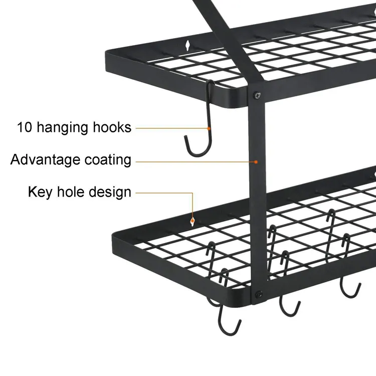 ชั้นวางหม้อแบบแขวนผนังปรับระดับได้ ขายดี ที่แขวนฝาหม้อ