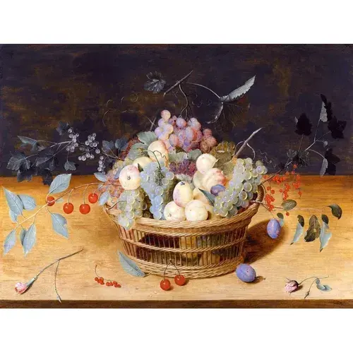 ภาพจิตรกรรมฝาผนังห้องครัวผนังยังคงชีวิตของผลไม้ในตะกร้าสำเนียงกระเบื้อง backsplash 8x6นิ้ว
