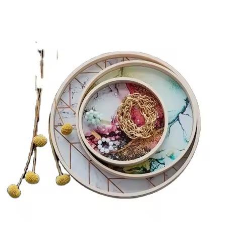 ถาดเสิร์ฟไม้เคลือบลายสำหรับขนมและเครื่องดื่ม