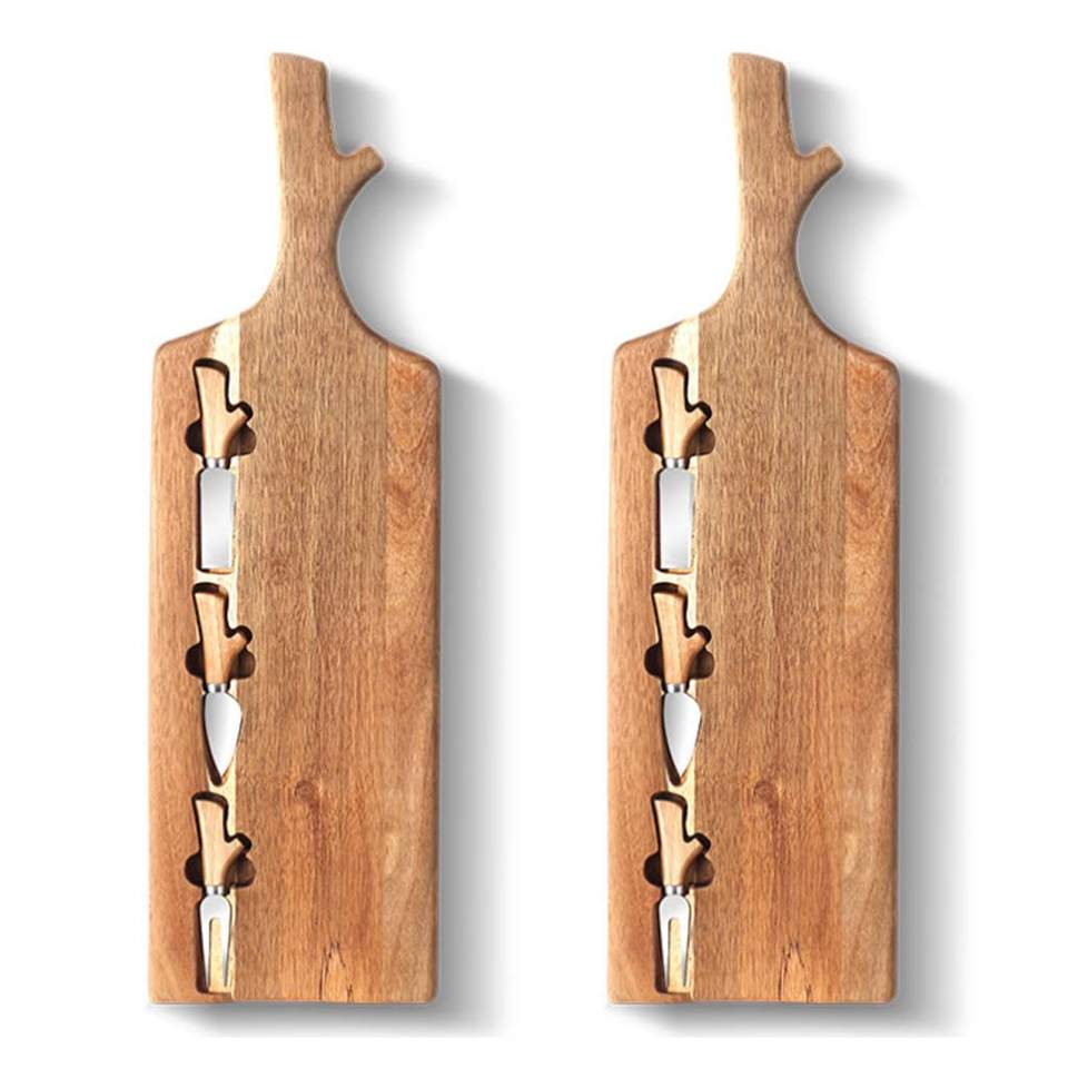 Kitchen Bamboo Cheese Board with Drawers and Cheese Tools, Wooden Charcuterie Platter with Cutlery Stainless Steel