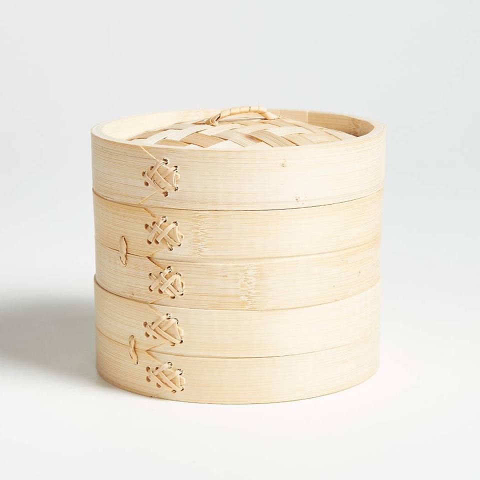 ตะกร้านึ่งอาหารมีฝาปิดถาดเกี๊ยวธรรมชาติงานทำมือ