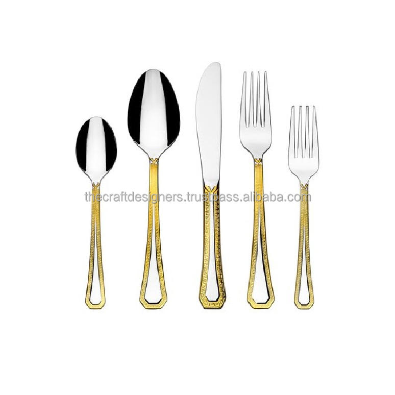 ชุดเครื่องครัวเครื่องเงินสีทองชุดช้อนส้อมและมีดสำหรับงานแต่งงานเครื่องใช้ในครัวชุดช้อนส้อมสำเร็จรูปแบบหรูหราปลอดภัย