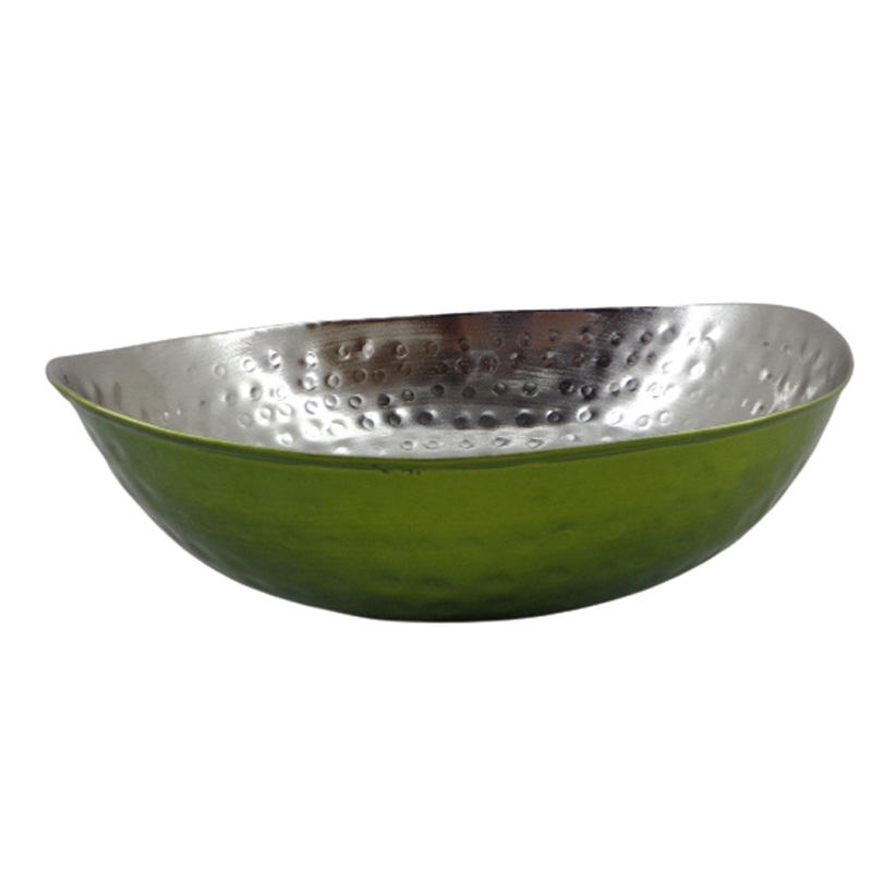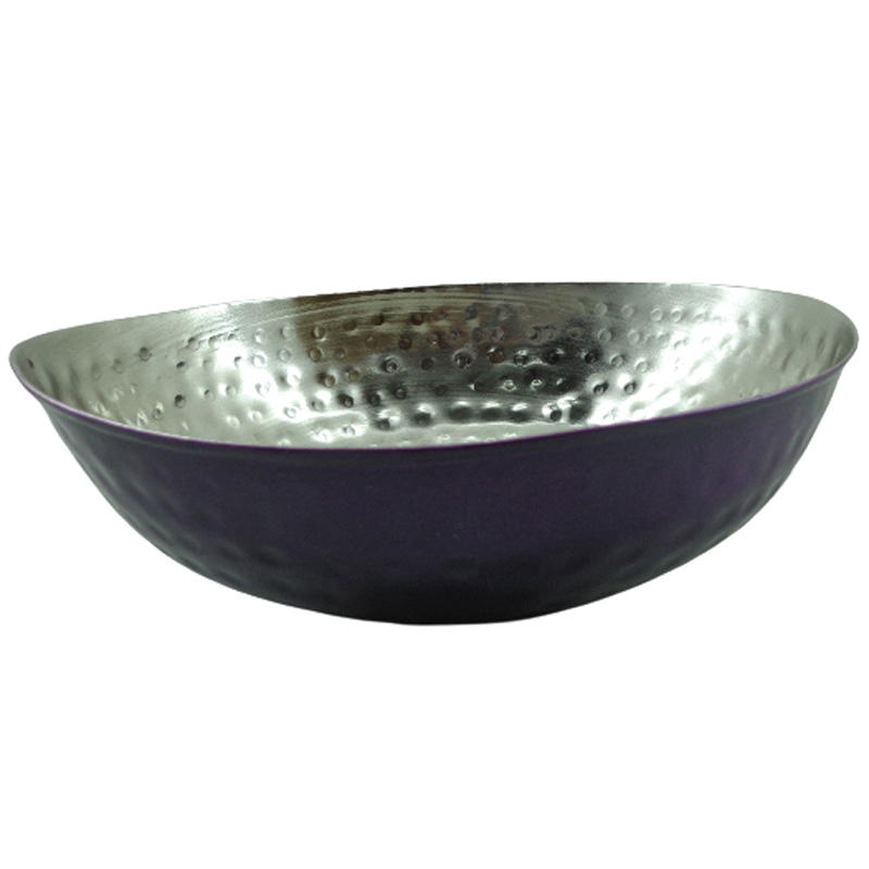 ชามโลหะทรงไข่ทำจากนิกเกิลพร้อมชามเสิร์ฟอาหารสีชมพูสำหรับอาหารเย็นงานทำมือ