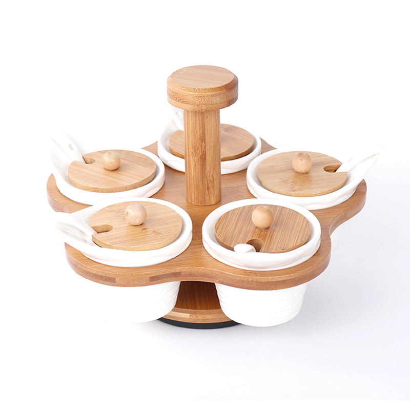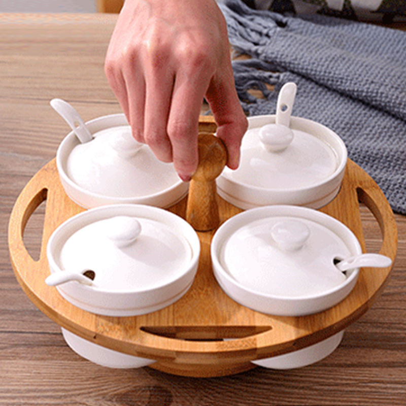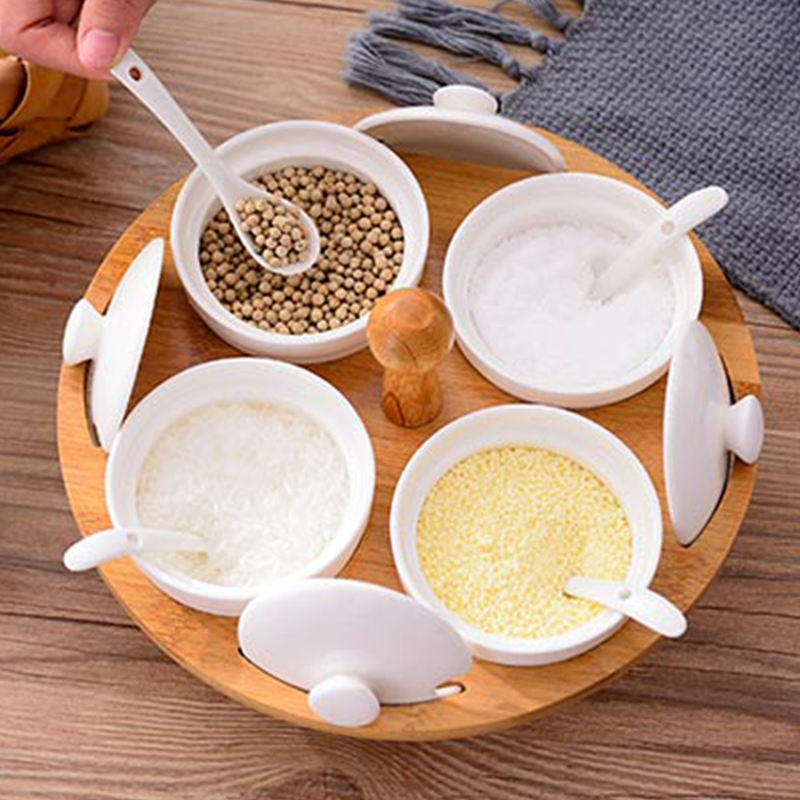 ชุดขวดเครื่องเทศเซรามิกนวัตกรรมเครื่องครัว,กล่องเครื่องเทศฝาไม้ไผ่ชุดสามชิ้นเข้าคู่กับชั้นวางเครื่องปรุงในครัว