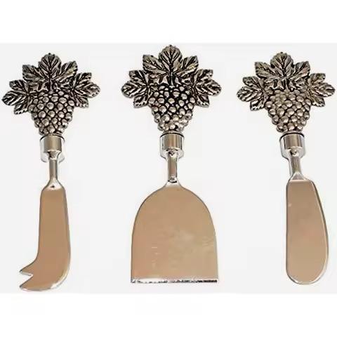Kitchenware Polished Cheese Slicer & Spatula Set With New Grapes With Leaves Handle Cheese Slicer & Spreader Set