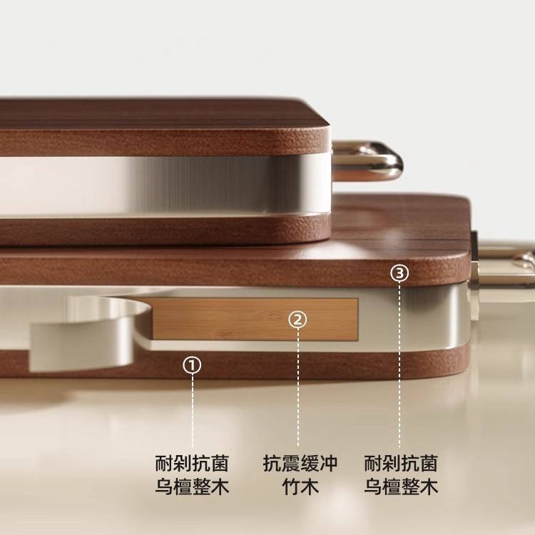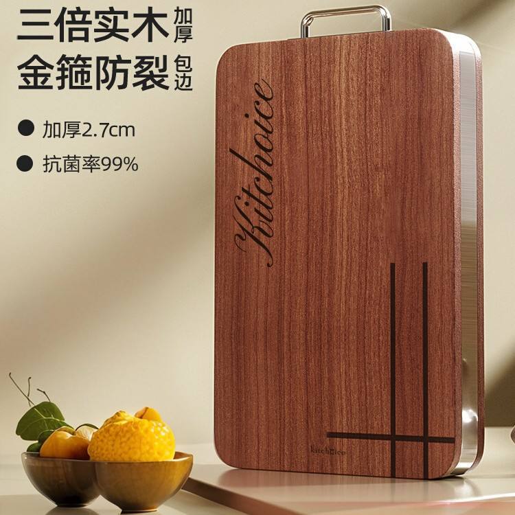 เขียงไม้ดำอีโบนีทรงสี่เหลี่ยม ยี่ห้อ Kitchoice ป้องกันแบคทีเรียและเชื้อรา พร้อมด้ามจับทองแดง ทนทาน ใช้ในครัวเรือน