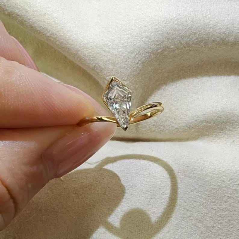 แหวนเพชรทรงไคท์คัทเพาะเลี้ยงในห้องปฏิบัติการ พร้อมใบรับรอง IGI สำหรับผู้หญิง ทองคำแท้ 14K ดีไซน์ทันสมัย เหมาะสำหรับเป็นของขวัญหมั้น