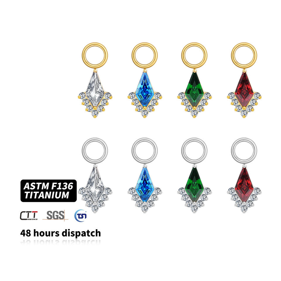 จี้รูปว่าว ต่างหูไทเทเนียม ASTM F136 ประดับพลอยแซฟไฟร์สีฟ้า ซิรคอน ต่างหูแบบติดหู DIY สำหรับเจาะหู เครื่องประดับหรูหราสำหรับตกแต่งใบหู