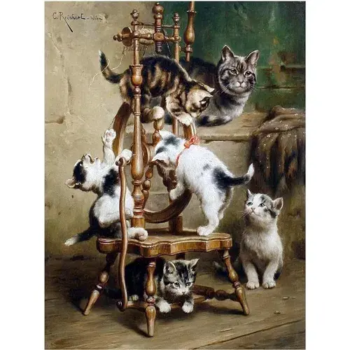 Kittens on a Spinning Wheel Accent Tile Mural Kitchen Wall Backsplash Ceramic Furniture