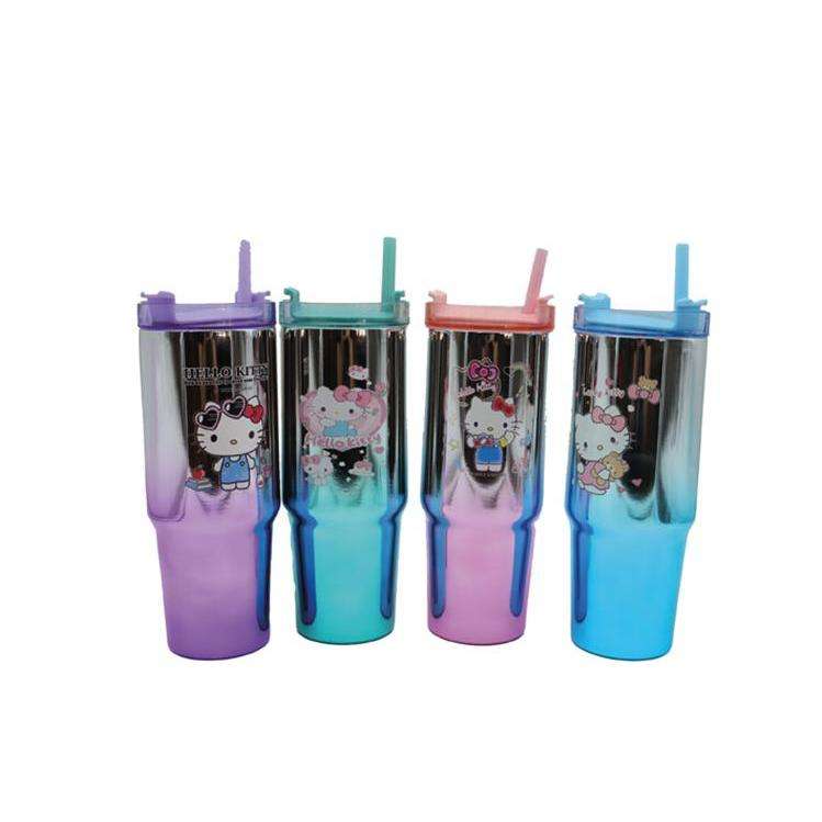 Kitty กระติกน้ำร้อนสแตนเลสสำหรับรถยนต์, กระติกน้ำร้อนทำจากเหล็กเคลือบกัลวาไนซ์ขนาด30ออนซ์ขวดมีฝาปิดทรงถ้วยเก็บความร้อนสำหรับรถยนต์