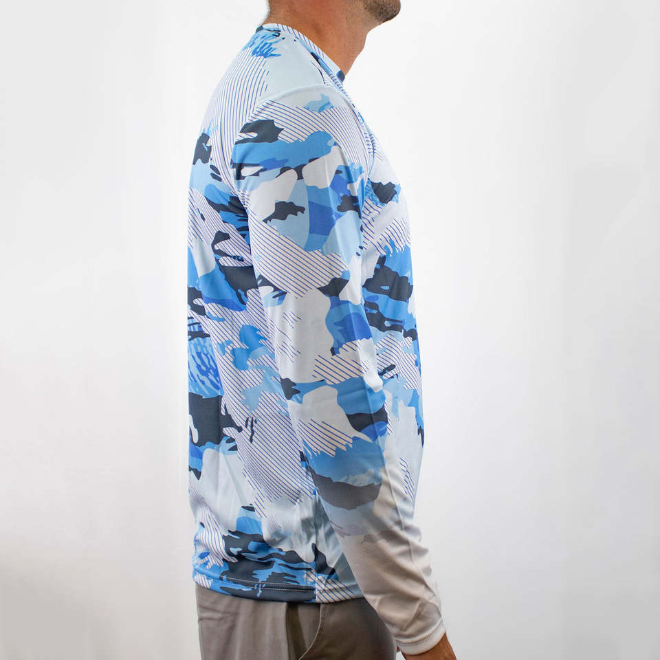 เสื้อยืดตกปลาแขนยาวพิมพ์ซับลิเมชันสำหรับผู้ชายเสื้อตกปลาผ้าโพลีเอสเตอร์100%