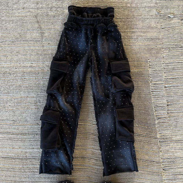 กางเกงขายาวผู้ชาย Kivotech รุ่นสั่งทำพิเศษ ทรงหลวม สไตล์ซันเฟด กางเกงสเวตแพนท์สี่กระเป๋า กางเกงคาร์โก้ กางเกงสเวตแพนท์ลายฟอกสี กางเกงสเวตแพนท์ประดับเพชร