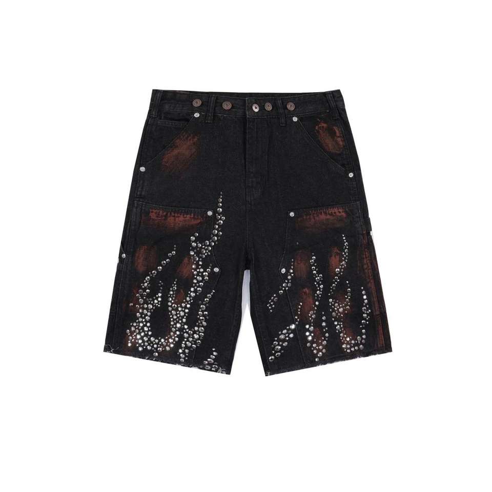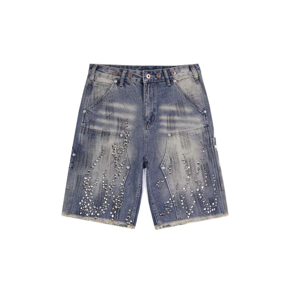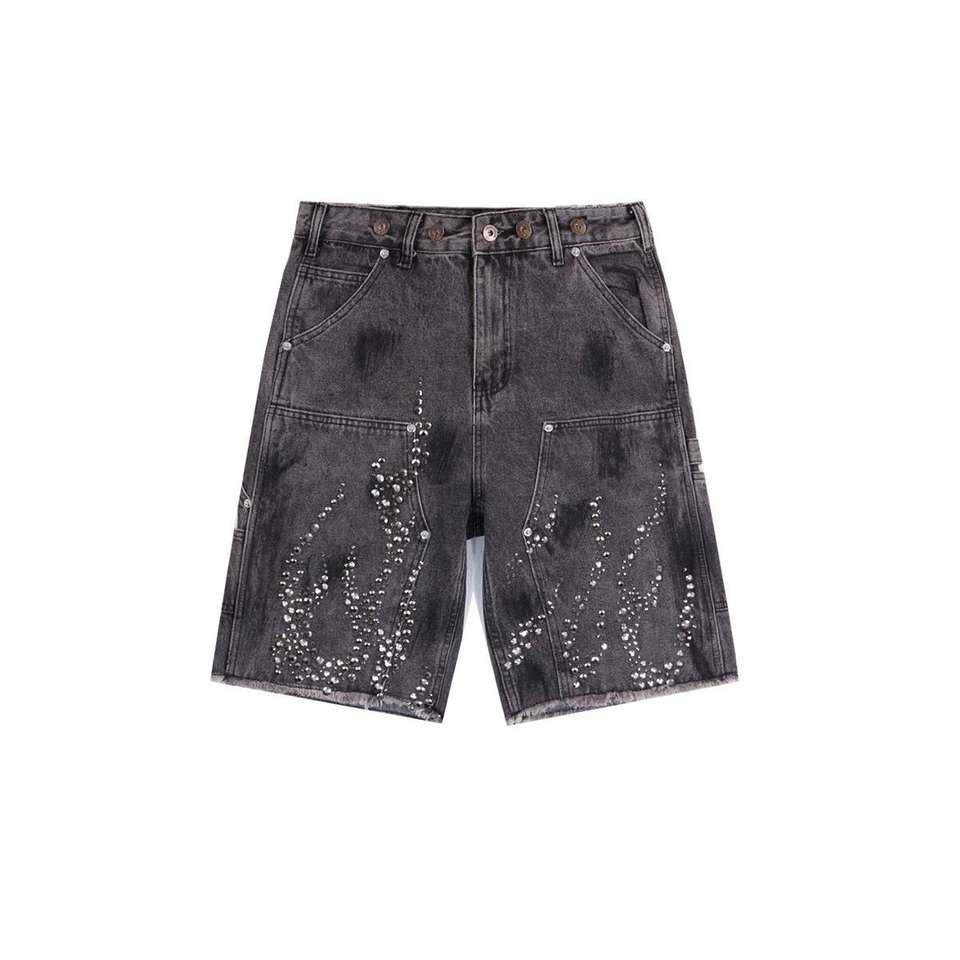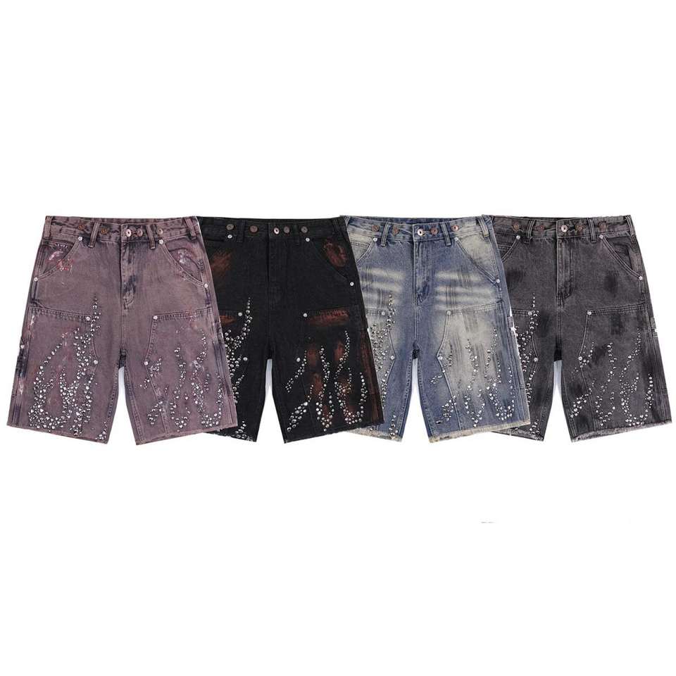 กางเกงขาสั้นผู้ชาย Kivotech ปรับแต่งได้ ระบายอากาศดี สีซีดแบบวินเทจ พิมพ์ลายหิน กางเกงยีนส์ขาสั้นพรีเมียม ผ้าฝ้าย 100%