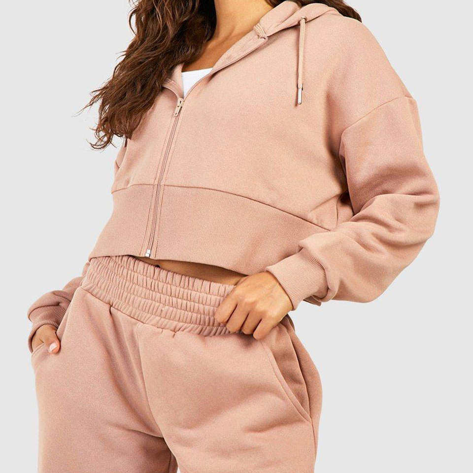ชุดวอร์มผู้หญิง Kivotech คุณภาพสูง ผ้าฝ้ายแท้ 100% เนื้อผ้าเทคฟลีซ เสื้อครอปฮู้ดดี้แบบเรียบง่าย ชุดวอร์มสำหรับผู้หญิง ชุดเซ็ต 2 ชิ้น