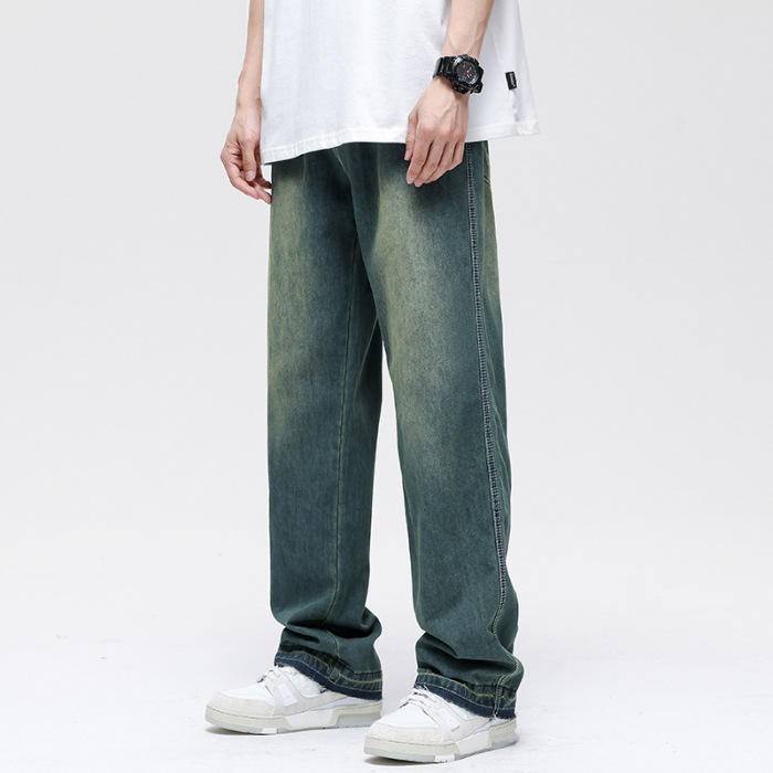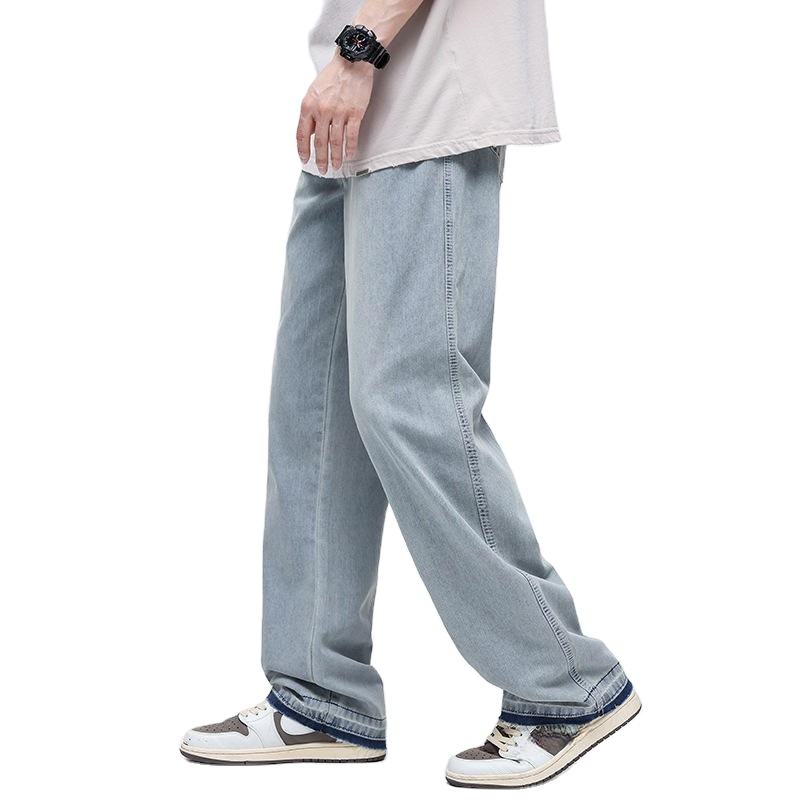 Kivotech กางเกงยีนส์ขาบานสำหรับผู้ชาย, กางเกงยีนส์ขาตรงทรงหลวมโอเวอร์ไซส์ซักได้