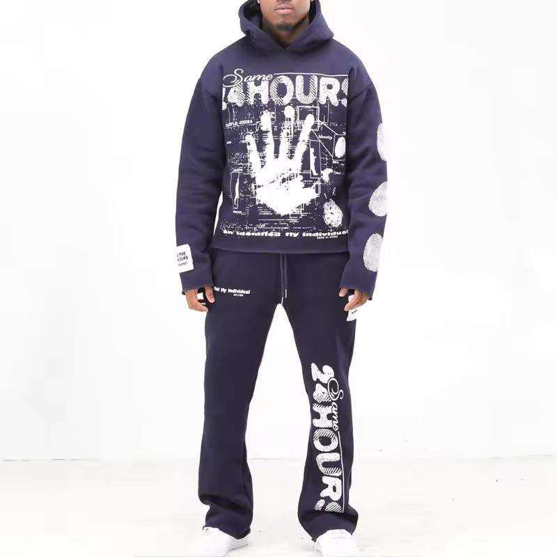 Kivotech ชุดวอร์มชุดวอร์มผ้าฝ้ายมีฮู้ดและกางเกงซักกรดพิมพ์ลายสกรีนโลโก้