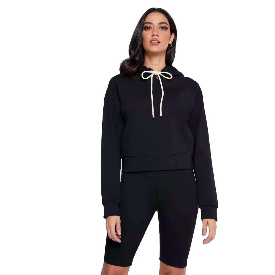 ชุดเสื้อฮู้ดดี้และกางเกงขาสั้นผู้หญิงแบบลำลองผ้าถัก ดีไซน์ OEM ของ Kivotech พิมพ์โลโก้ตามสั่ง ผลิตในปากีสถาน