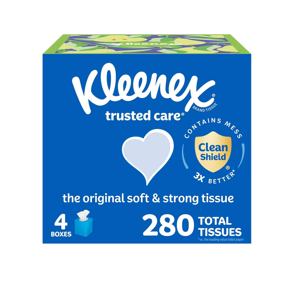 Kleenex ทิชชู่บำรุงผิวหน้าที่เชื่อถือได้, กล่องลูกบาศก์4ก้อน, 70เนื้อเยื่อต่อกล่อง, 2ชั้น (รวม280)