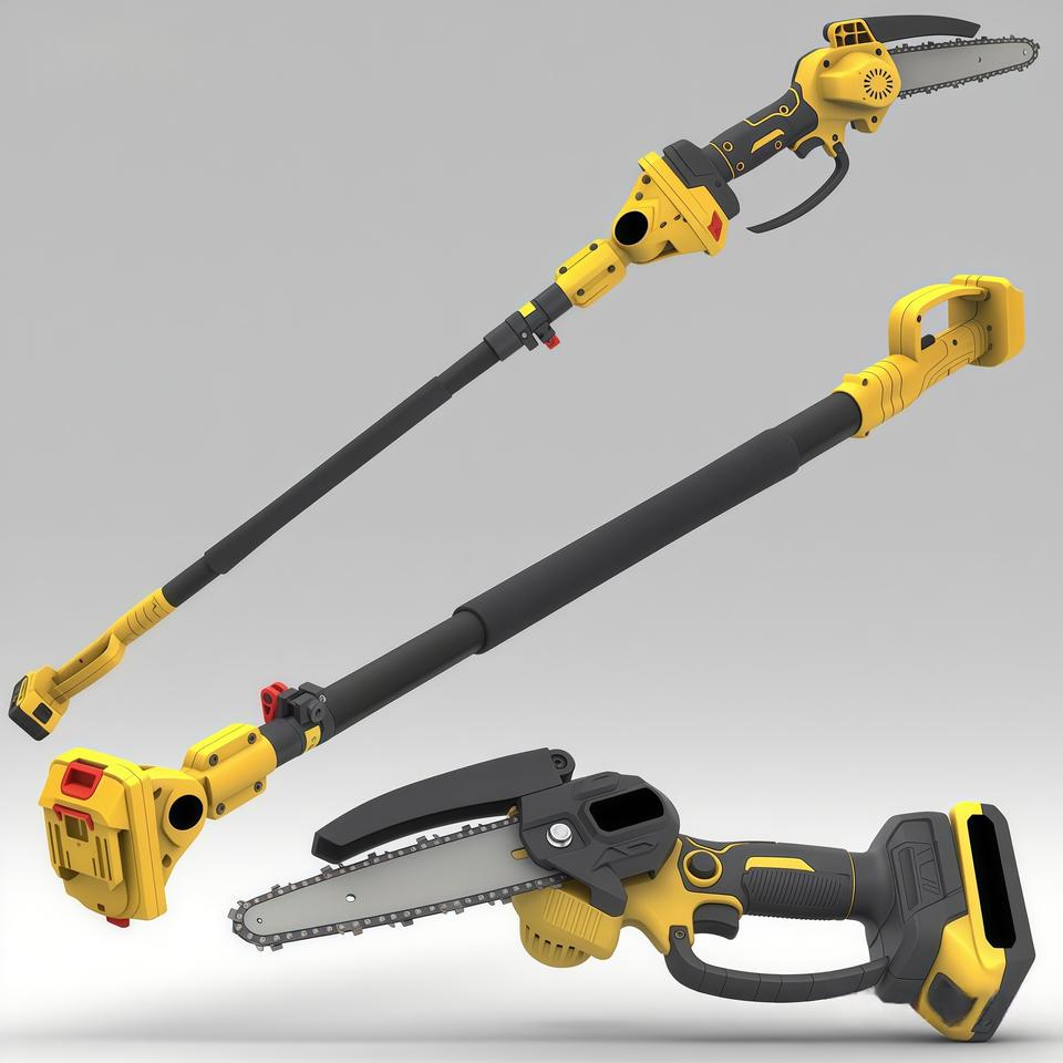 เลื่อยโซ่ยนต์ไร้สายแบบยืดหดได้ ใช้แบตเตอรี่ สำหรับงานตัดไม้ในบ้าน ระดับ DIY