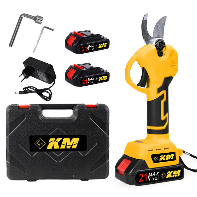 กรรไกรตัดแต่งกิ่งไฟฟ้า Km ความจุการตัด 20 มม. กรรไกรตัดแต่งกิ่งไร้สายแบบชาร์จไฟได้ ดีไซน์แบบตัดสองด้าน ใช้งานได้ทั้งมือซ้ายและขวา