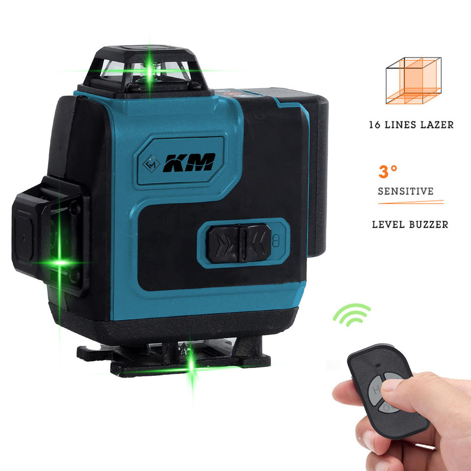 เครื่องวัดระดับเลเซอร์ Km 16 เส้น แสงสีเขียว 520 นาโนเมตร เกรดอุตสาหกรรม เครื่องมือปรับระดับพื้นผิวผนังและพื้น