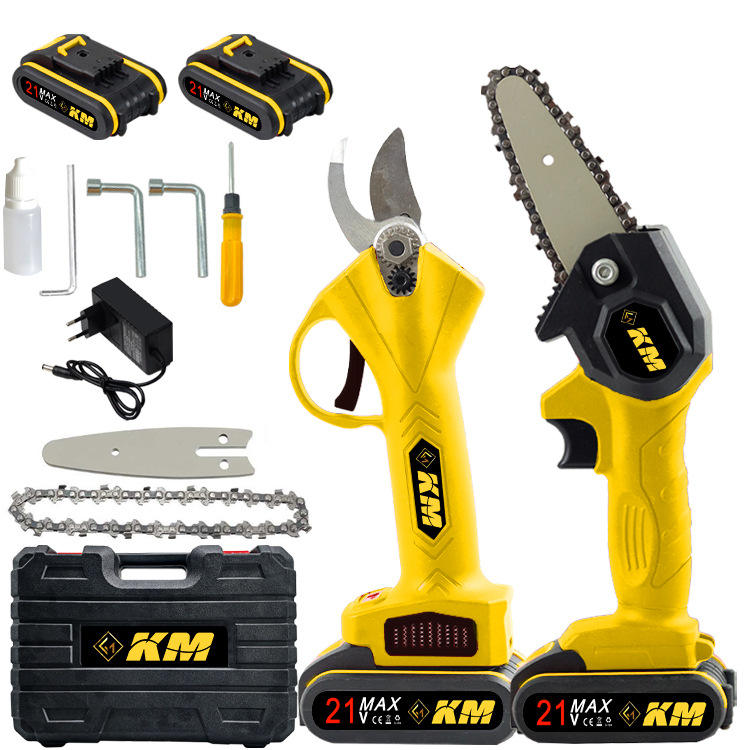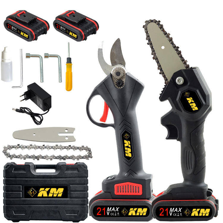 เลื่อยโซ่ไฟฟ้าขนาดเล็ก Km 4 นิ้ว มอเตอร์ไร้แปรงถ่าน ใช้แบตเตอรี่ ชุดเครื่องมือตัดแต่งกิ่งสำหรับใช้ในบ้านและนอกบ้าน