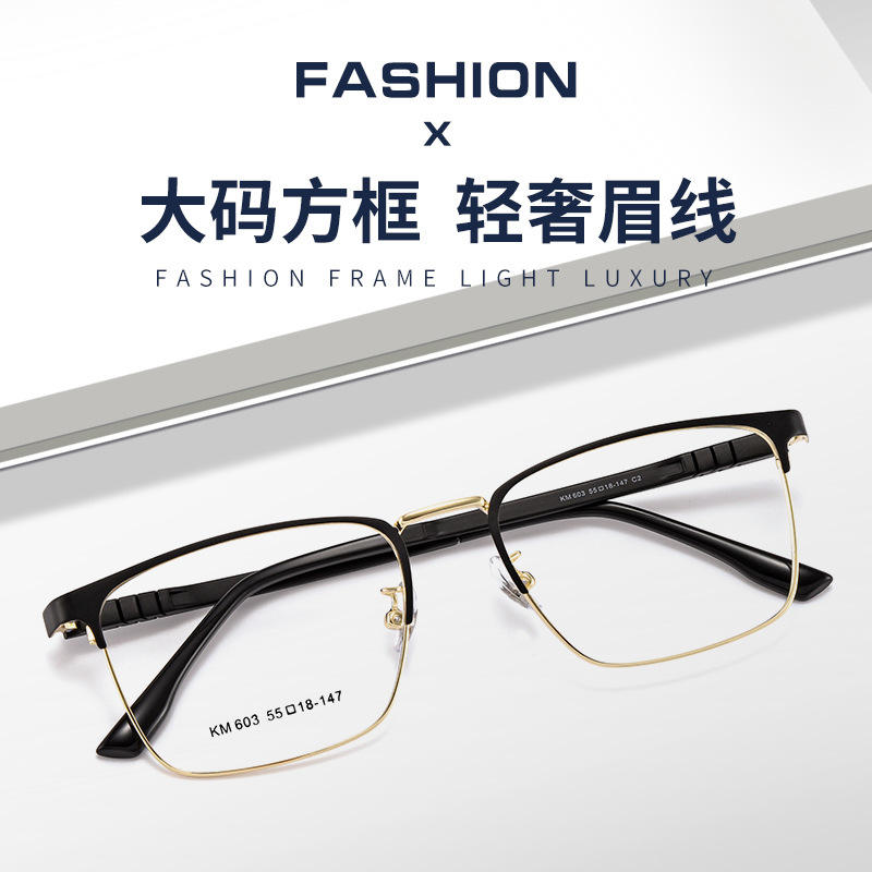 Km603 กรอบแว่นตาทรงสี่เหลี่ยมสำหรับผู้ชาย เลนส์เรซิ่นแบบเต็มกรอบ ป้องกันรังสียูวี สไตล์ธุรกิจ ต้นกำเนิดแดนหยาง