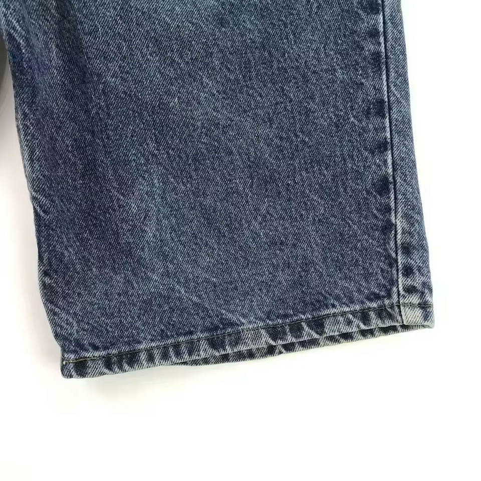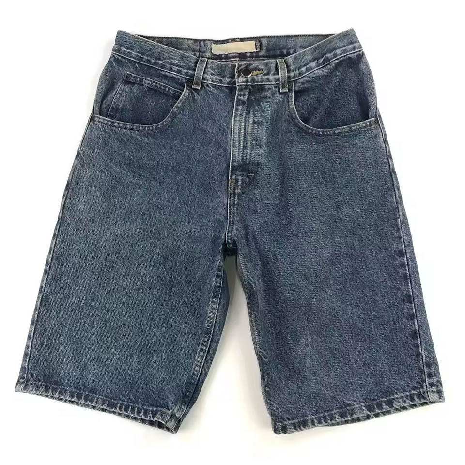 กางเกงยีนส์ขาสั้นทรงหลวมยาวถึงเข่าสำหรับผู้ชายกางเกงขาสั้นผ้ายีนส์แนวสตรีททรงตรงสำหรับผู้ชาย