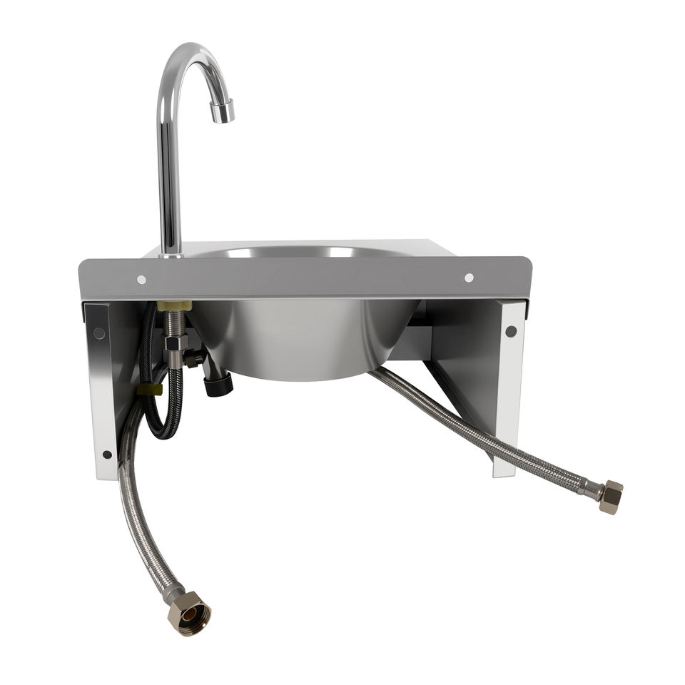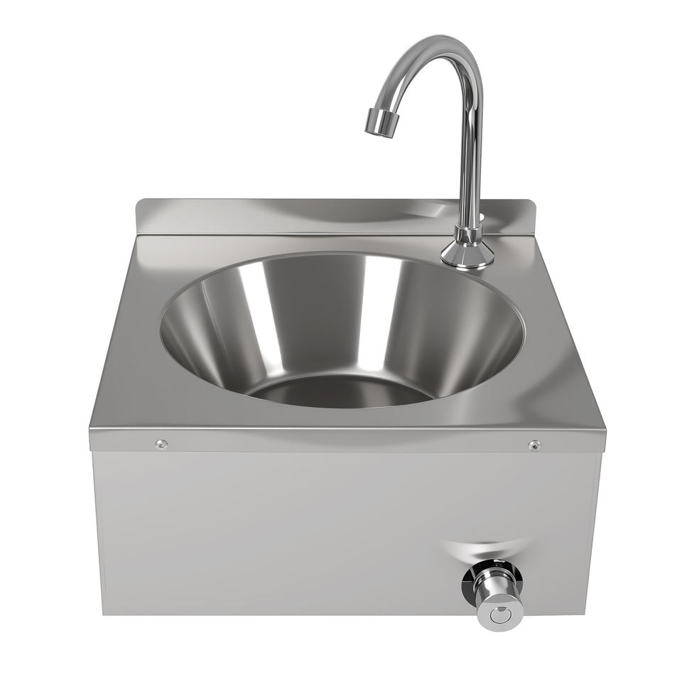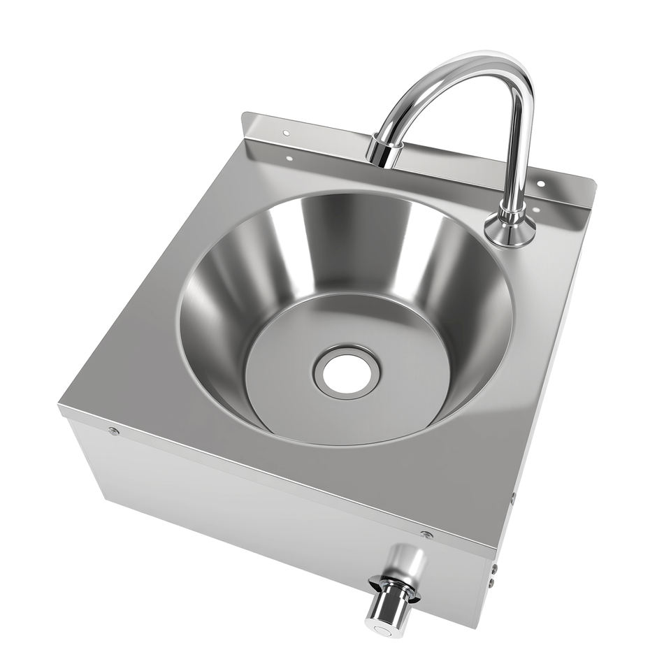 อ่างล้างจานสแตนเลสติดผนังสำหรับครัวเชิงพาณิชย์ ควบคุมด้วยระบบเข่า ผิวสัมผัสด้านแบบปัดเงา ได้รับการรับรองมาตรฐาน NSF รับน้ำหนักได้ 300 กก./ตร.ม.
