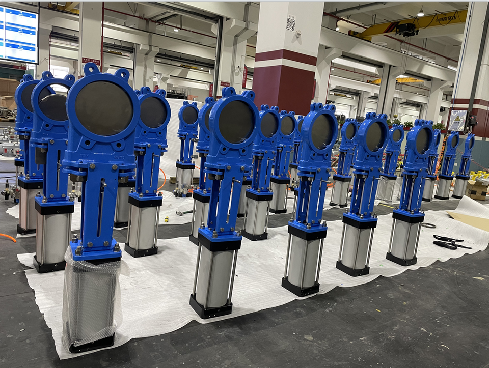 วาล์วประตูแบบมีใบมีดพร้อมกระบอกลมควบคุม