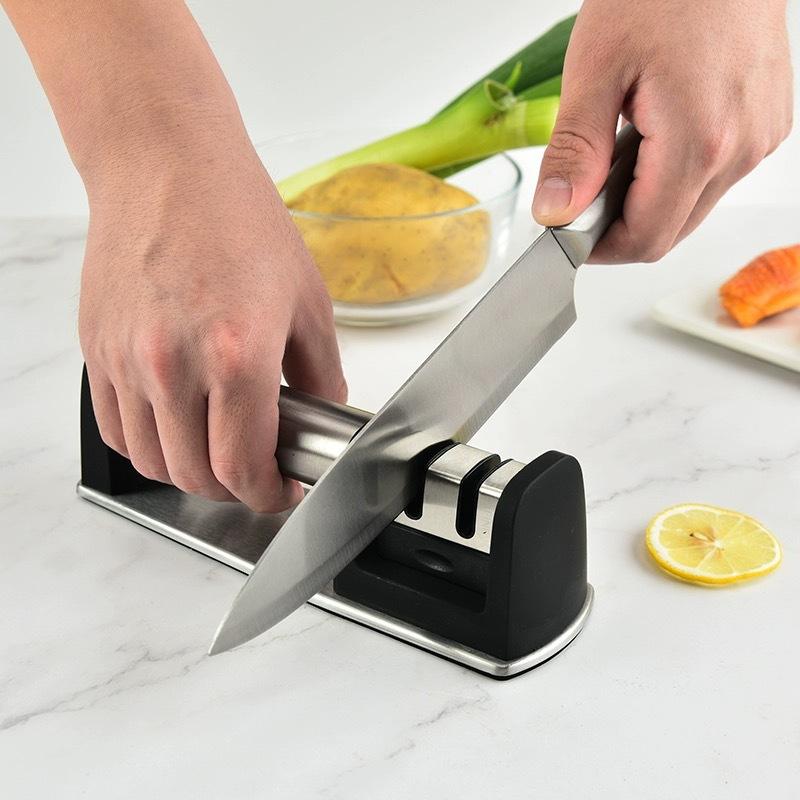 เครื่องลับมีดสแตนเลสแบบแมนนวล หลายระดับความละเอียด อุปกรณ์ครัวสำหรับมีดและกรรไกร ใช้ในครัวเรือน