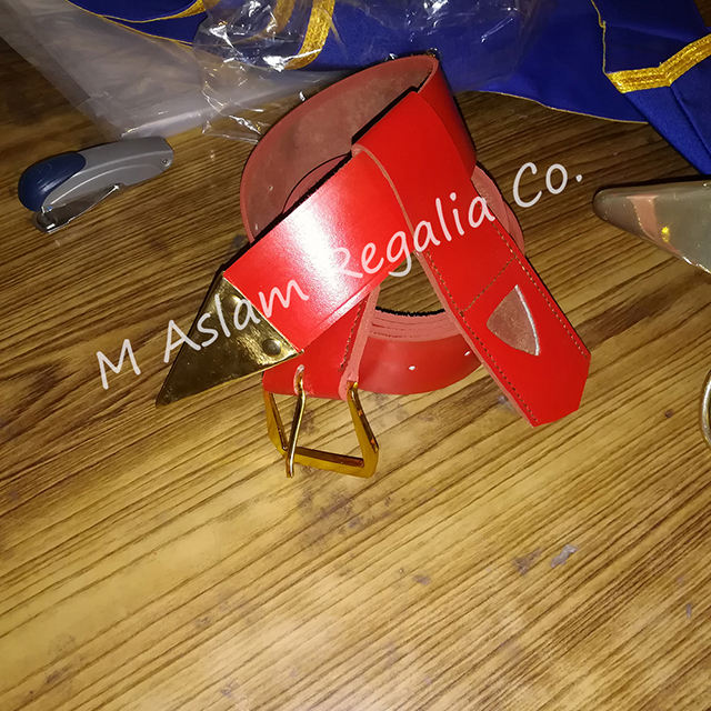 เข็มขัดหนังแท้สีน้ำตาลของอัศวินเทมพลาร์ พร้อมหัวเข็มขัดและปลายสายแบบทอง | เข็มขัดเสื้อคลุมเมสันิก เคที