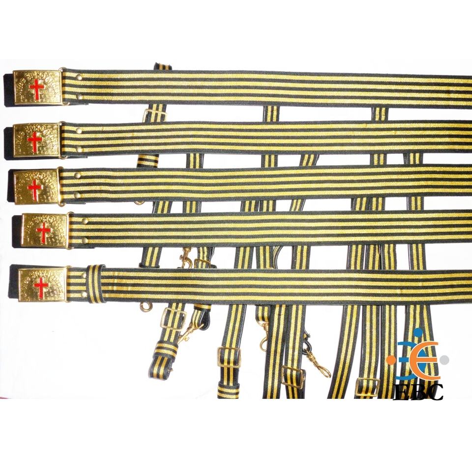 TWO LEATHER BACKED SLINGSGOLD METAL BUCKLE