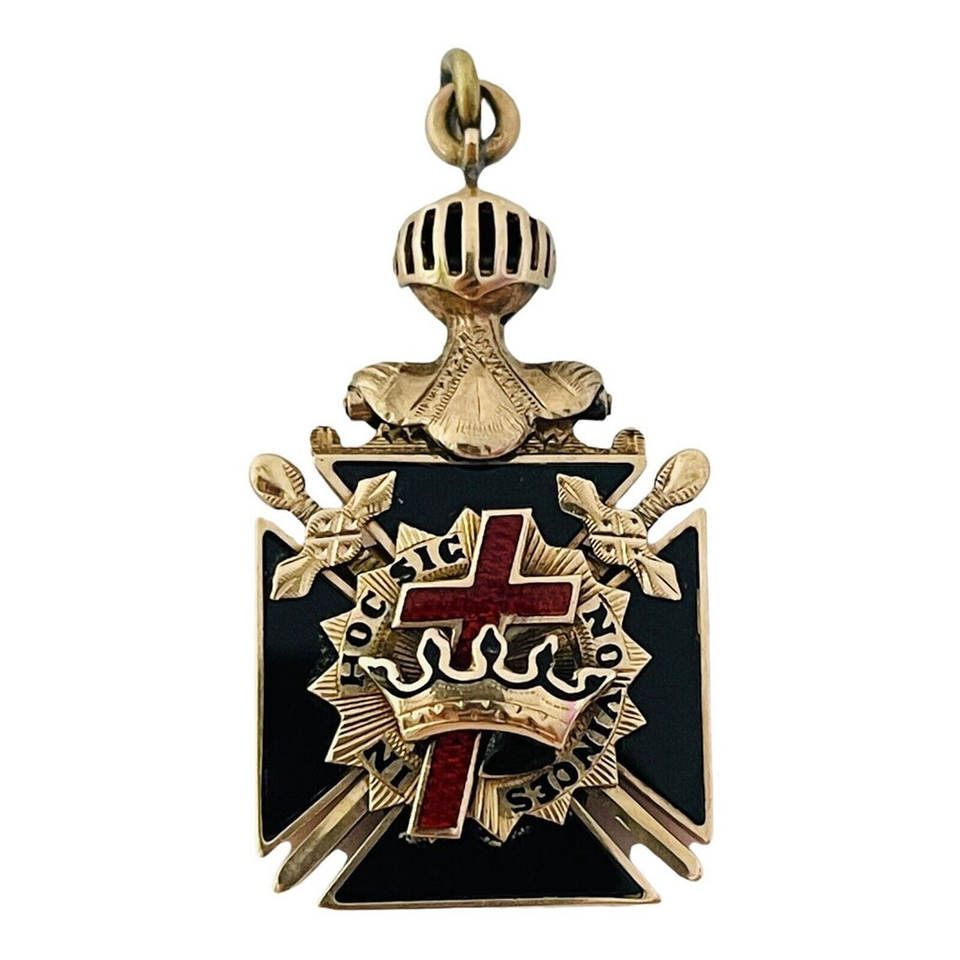 จี้อัศวินเทมพลาร์พร้อมเหรียญเคลือบรูปไม้กางเขนและมงกุฎพร้อมจารึกละติน