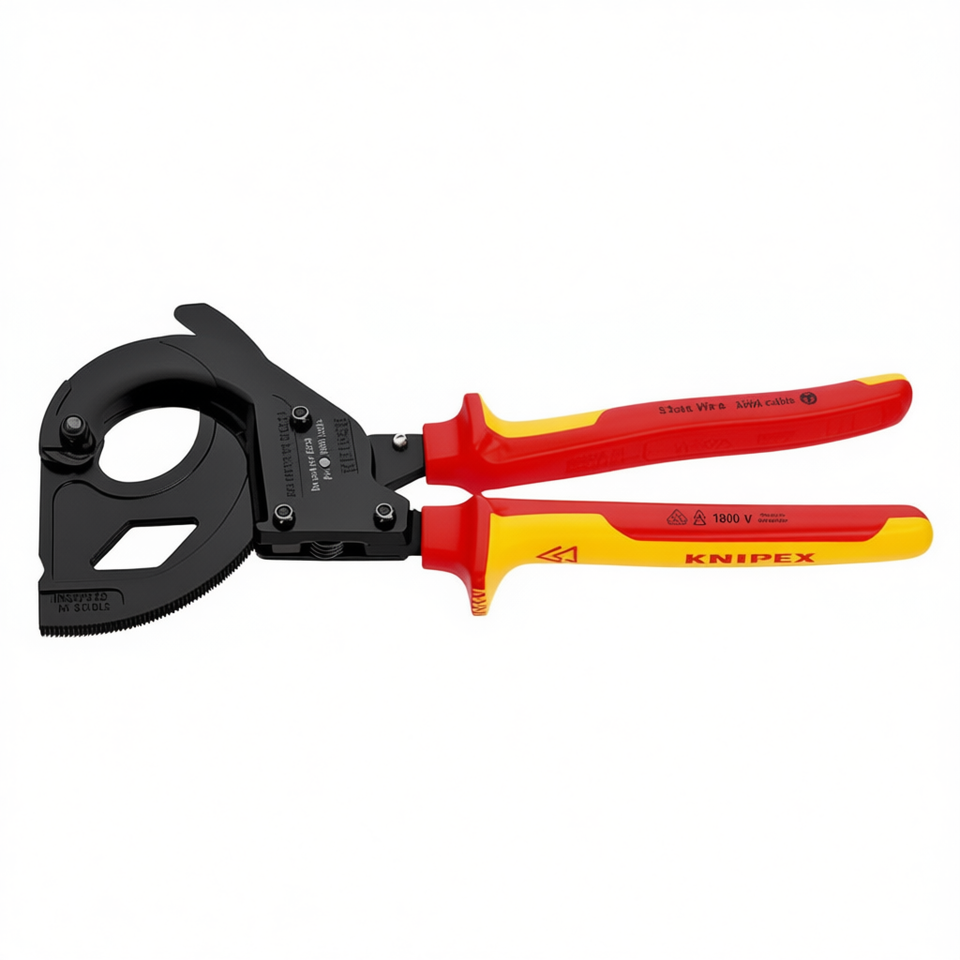 เครื่องตัดสายเคเบิลเคลือบสีดำของไนเพ็กซ์แบบระบบแร็ทเช็ตสำหรับสายเคเบิลหุ้มเกราะลวดเหล็ก (สายเคเบิล SWA) ด้ามจับหุ้มฉนวนแบบกรรไกร