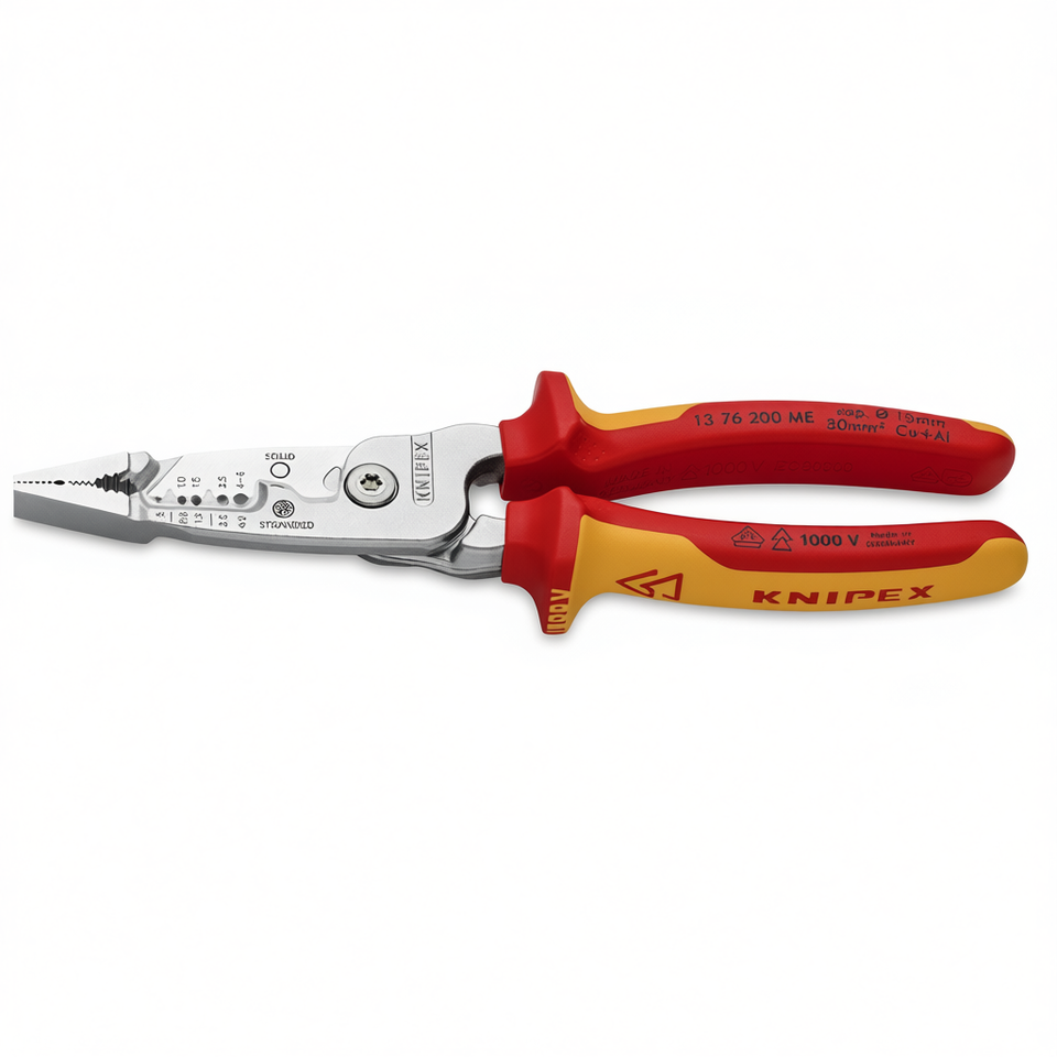 คีมอเนกประสงค์สแตนเลสเกรดอุตสาหกรรม Knipex รุ่น 13 76 200 ME 1000 V เครื่องมือช่างไฟฟ้าแบบหุ้มฉนวน
