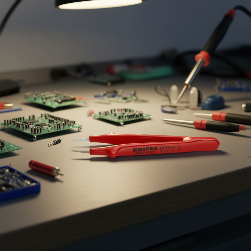 แหนบปลายแหลมพิเศษ Knipex Precision รุ่นตรง 1000V พร้อมเข็มจับยึด