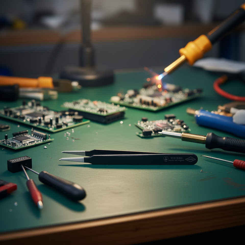 แหนบความแม่นยำสูง Knipex พร้อมปลายโค้งป้องกันไฟฟ้าสถิต