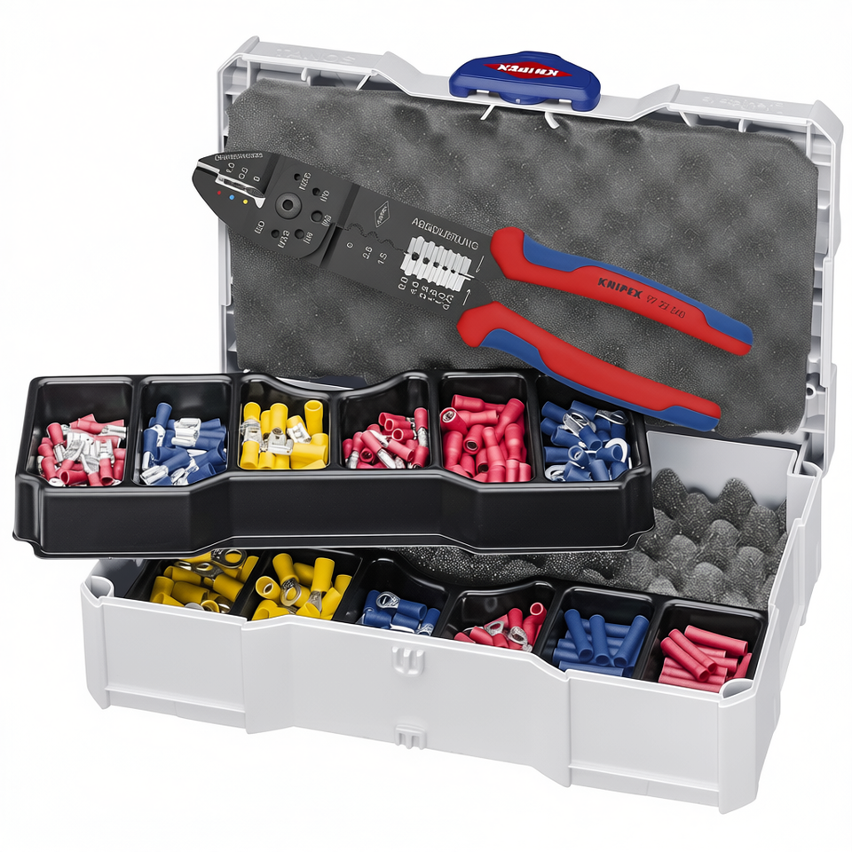ชุดขั้วต่อสายไฟทองแดงแท้ Knipex 13 ชิ้น พร้อมชุดเครื่องมือปอกสายไฟและขั้วต่อ รุ่น 97 90 26 สำหรับงานเดินสายไฟ