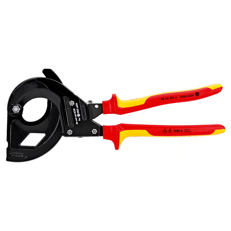 Knipex rack and pinion shears with insulated handle for cutting steel strip cables, 315 mm