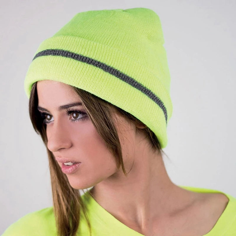หมวกไหมพรมสำหรับวิ่งกลางคืน ปลอดภัย มองเห็นได้ชัดเจน ลายสก็อต นีออน พิมพ์ลายดิจิตอล แจ็คการ์ด สำหรับผู้ใหญ่ ใช้ได้ทั้งชายและหญิง