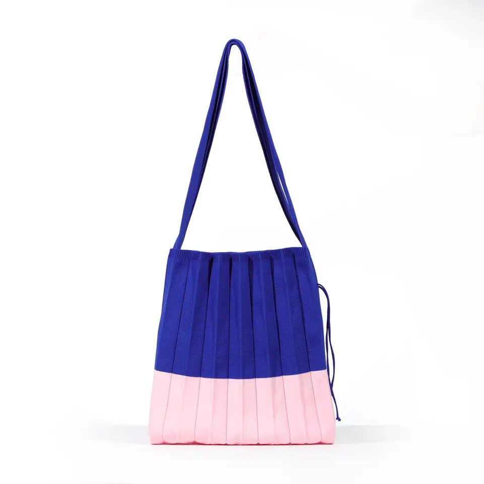 กระเป๋าถือแบบถัก Flyknit คุณภาพสูง กระเป๋าสะพายข้างเดี่ยวสำหรับผู้หญิง กระเป๋าพับได้สำหรับเดินทาง แฟชั่นใหม่ สีสันตัดต่อ ปิดแบบเปิด