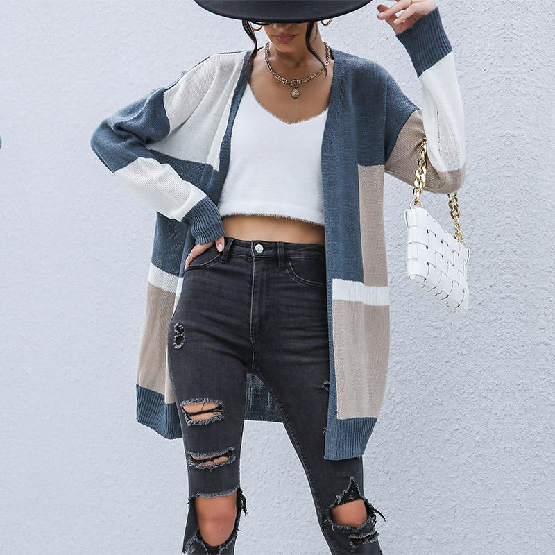 ถักVคอChicสีชมพูPatchworkเสื้อกันหนาวผู้หญิงCroppedเสื้อสเวตเตอร์ถักใหม่ฤดูใบไม้ร่วง 2020 เกาหลีเสื้อลําลองฤดูหนาวผ้าOffice Lady