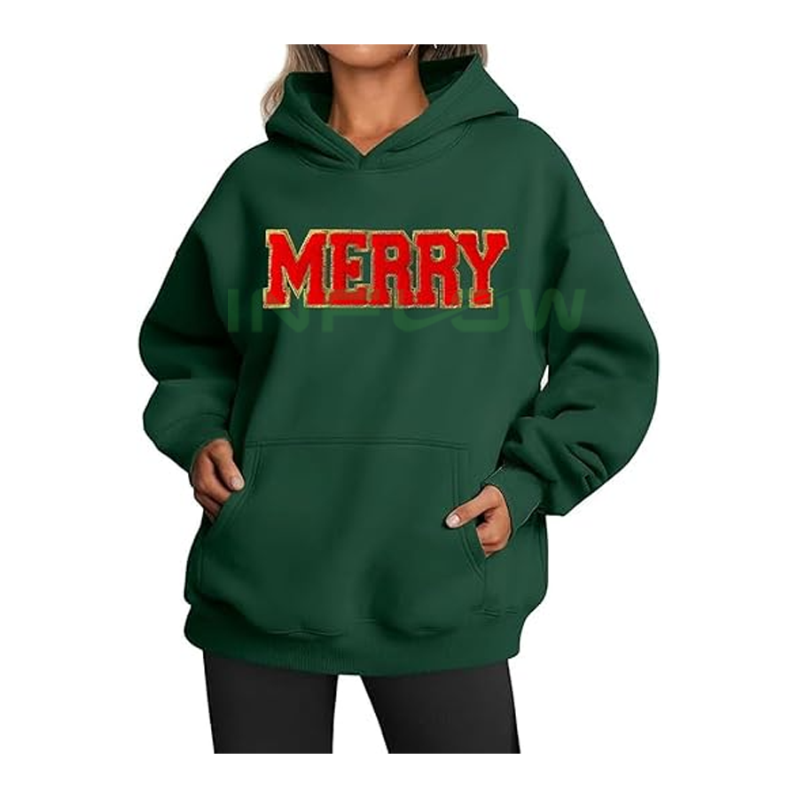 เสื้อฮู้ดไหมพรมลำลองสีพื้นสำหรับฤดูหนาว สไตล์สตรีท ปักลายเชนิลล์ ติดตรา ขนาดใหญ่ ระบายอากาศได้ดี ผ้าฝ้ายฟลีซ ODM สำหรับผู้หญิง