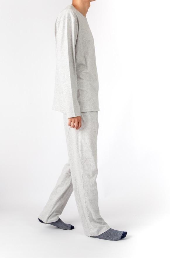 ผู้ชายถักชุดนอนชุดผ้าฝ้าย100% คอลูกแขนยาว
