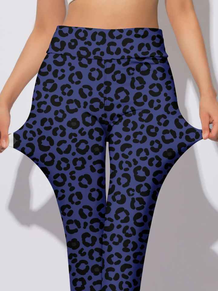 กางเกงเลกกิ้งถักนิตติ้งความยาวปานกลางสำหรับผู้หญิง เอวกลาง เนื้อผ้าหนา ยืดหยุ่น ใส่สบาย เหมาะสำหรับออกกำลังกาย โยคะ ลายพิมพ์