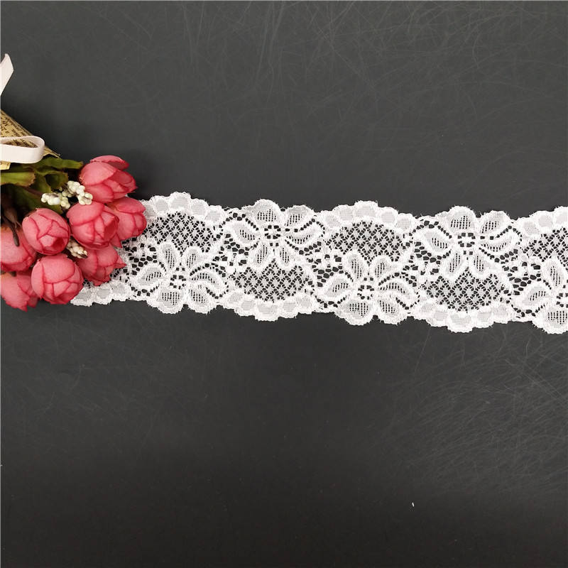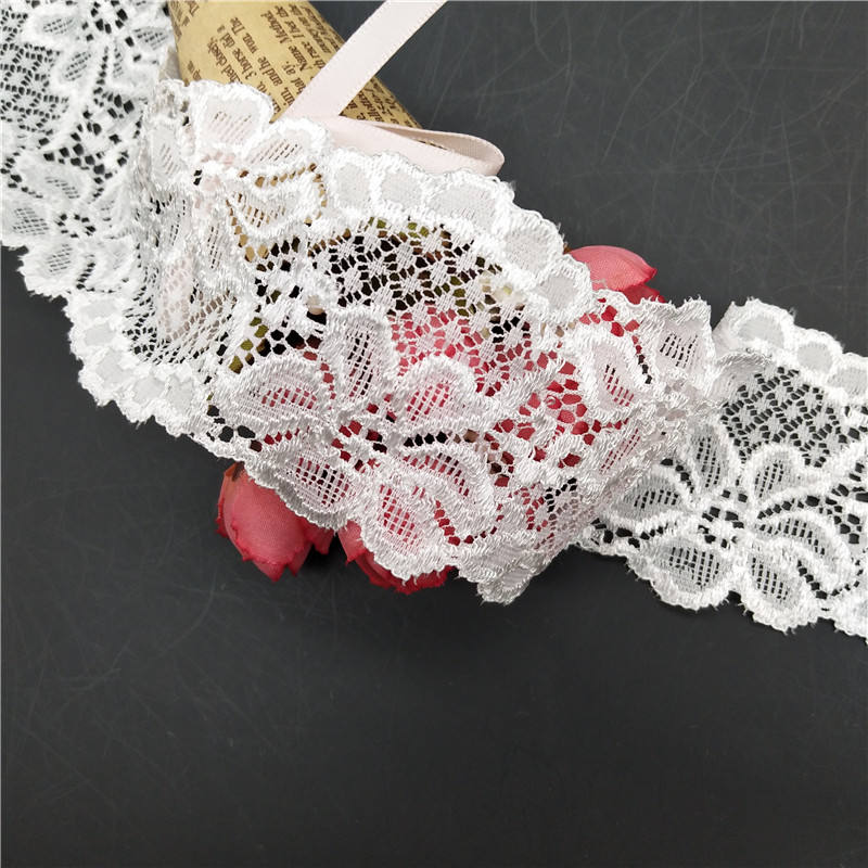 White 5.5cm Wide Knitted Sequin French Elastic Mesh Fabric Scallop Lace Trim Sewing Clothing Nylon Spandex Model RT304
