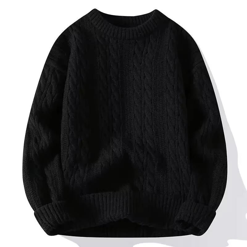 เสื้อสเวตเตอร์ถักผู้ชาย เสื้อพูลโอเวอร์สีพื้น เสื้อแขนยาว คอกลม ทรงหลวม เสื้อสเวตเตอร์ฤดูใบไม้ผลิ