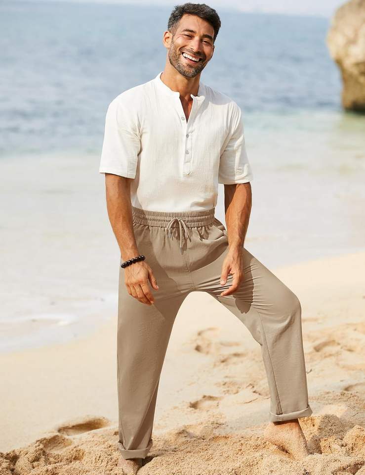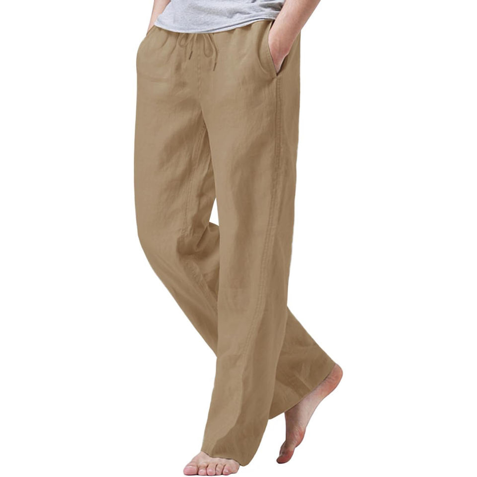 กางเกงผ้าแคนวาสสำหรับผู้ชายกางเกงผ้าลินินกางเกงเล่นโยคะผ้ายืดสำหรับใส่เที่ยวทะเลและ2025ลำลองฤดูร้อน