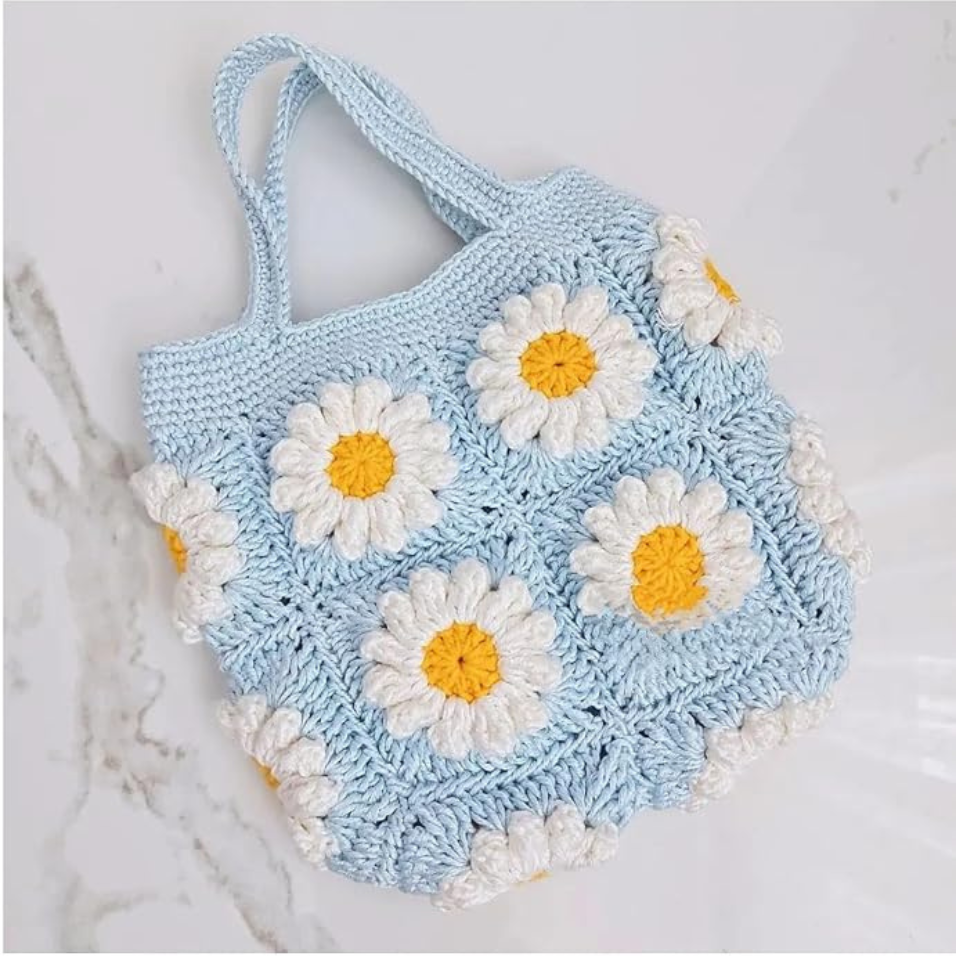 กระเป๋าถือถักสะพายไหล่สี่เหลี่ยมขนาดใหญ่ทำจากผ้าโครเชต์ลายโมทีฟแฮนด์เมดสำหรับเด็กผู้หญิงผลิตในเวียดนาม